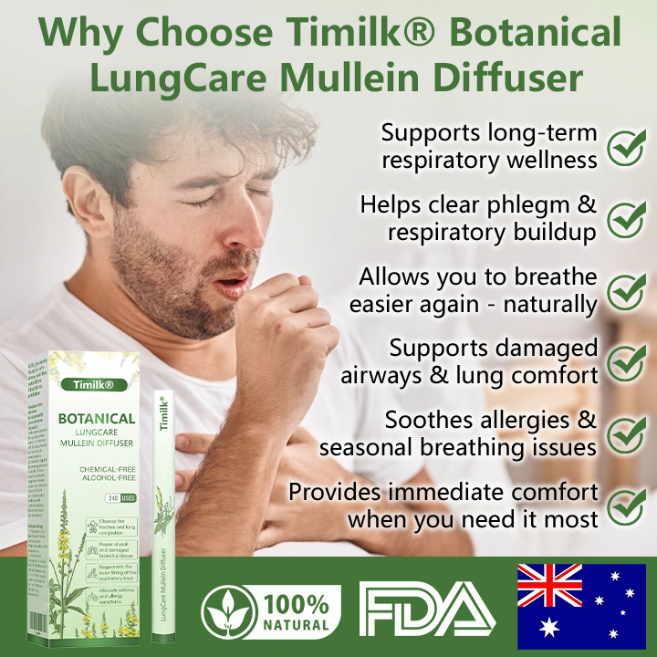 With 99% of people exposed to hazardous air pollution, respiratory support has never been more essential. If you're a former smoker still struggling with that lingering cough, or tired of costly solutions that promised everything but delivered nothing, you're not alone. Most people waste hundreds on products that barely work because they rely on the wrong delivery mechanism.But what if there's a clinically inspired approach that works in 2 minutes instead of 90 minutes? Timilk® Botanical LungCare Mullein Diffuser's advanced nasal inhalation technology delivers concentrated mullein extract directly to your respiratory system within 2 minutesbypassing digestion entirely and reaching your lungs where you need it most.